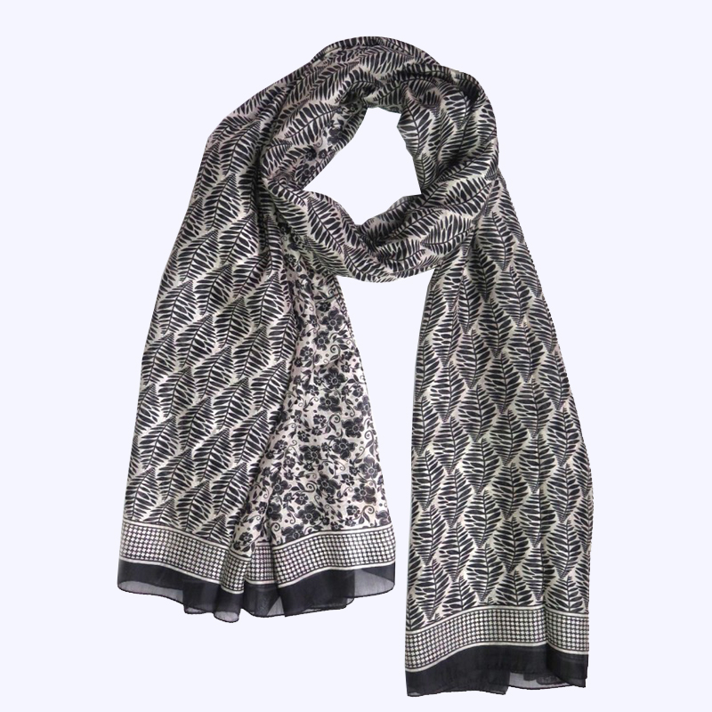 Foulard Fleur / Feuille Noir
