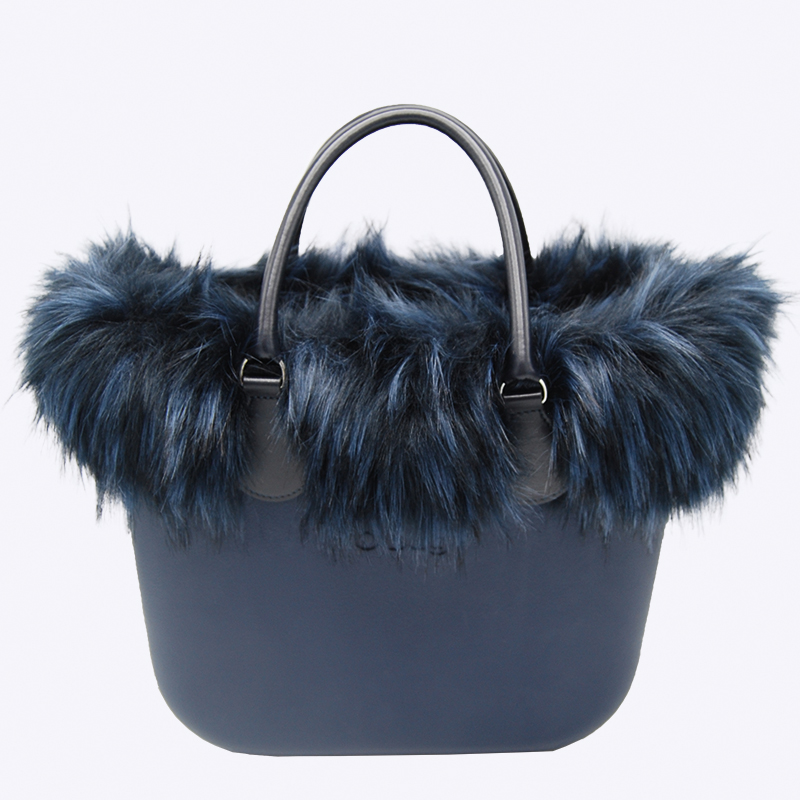 – Garniture fausse fourrure de chien viverrin Bleue O Bag Mini