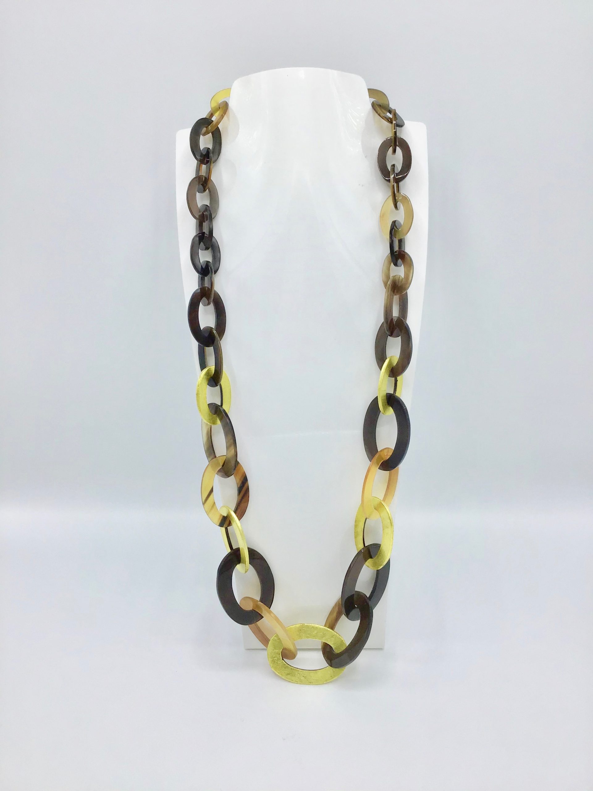 Sautoir anneaux plats ovales fins (3 tailles) 5 anneaux laqués Or.